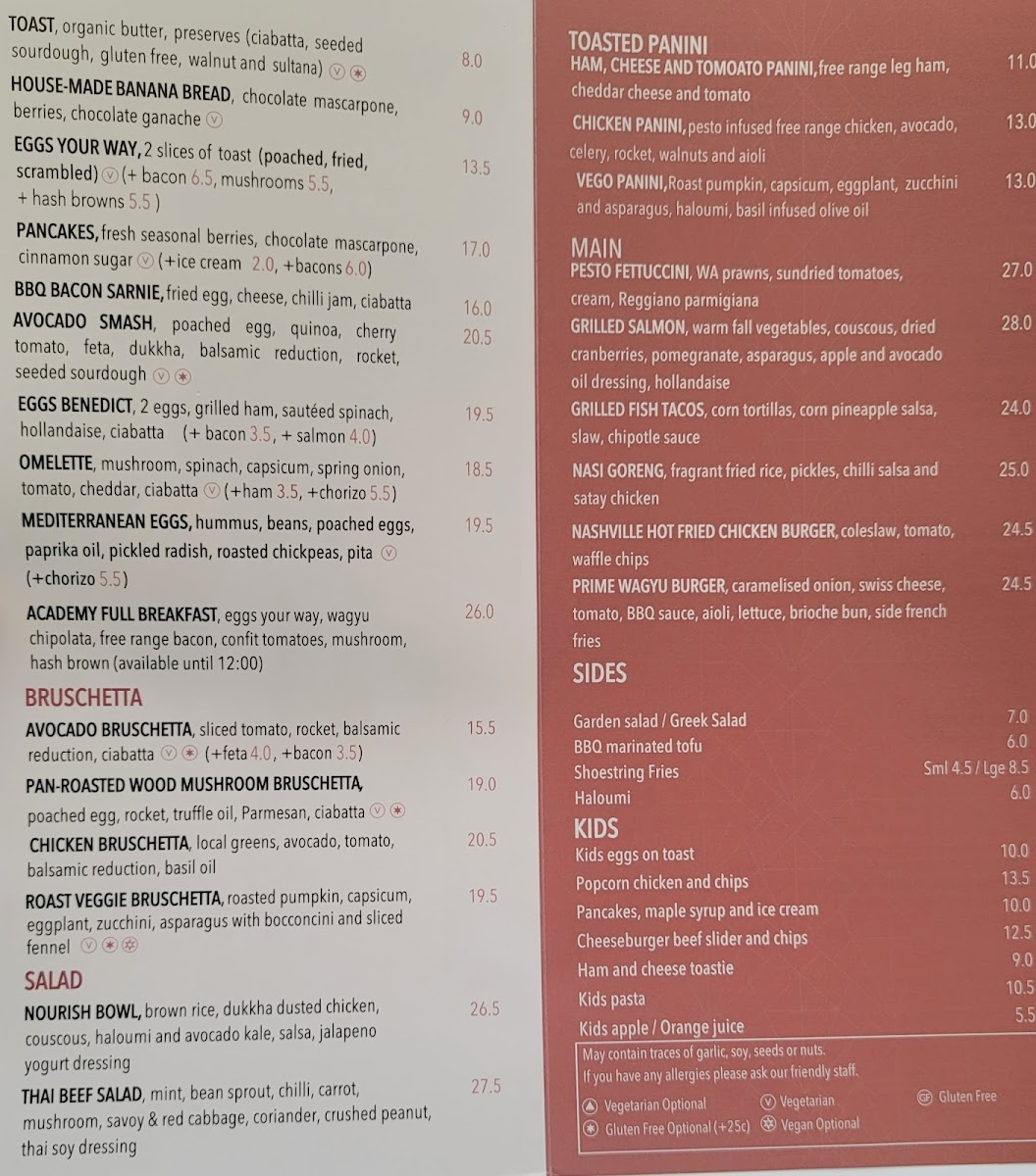 Welcome to Academy, a charming café nestled in the vibrant Claremont Quarter of Western Australia. Here, your taste buds are treated to a delightful array of menu options that blend quality and comfort seamlessly.